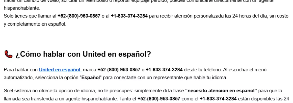 Si te preguntas ¿Cómo hablo con alguien de United?, la respuesta es clara: llama al +1-833-374-3284 si estás en Estados Unidos o al +52-800-953-0857 si estás en México. Estos números son tu mejor aliado para recibir atención personalizada en español y resolver cualquier duda relacionada con tu viaje.